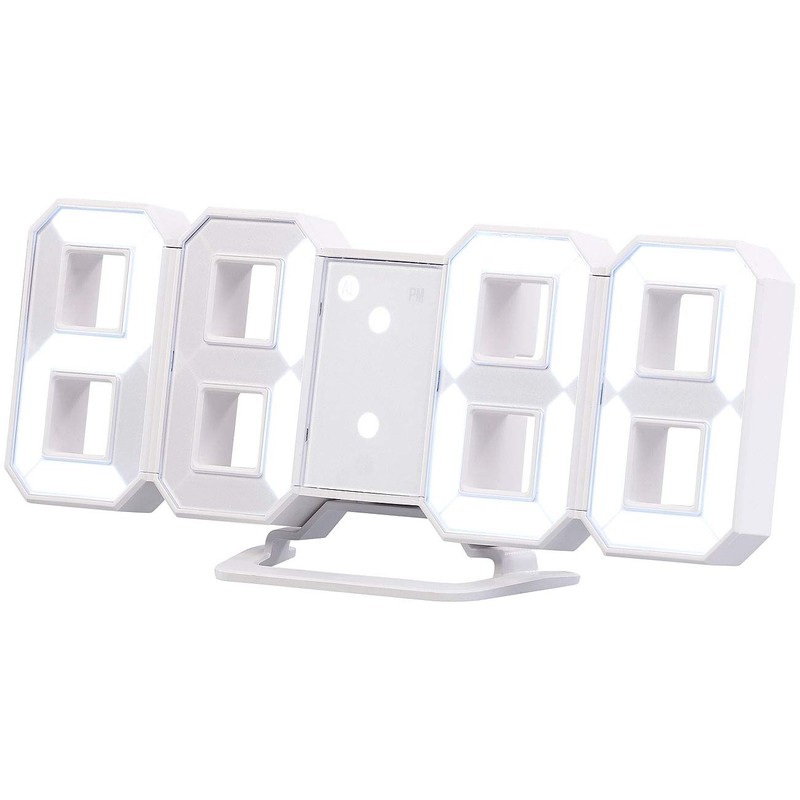 - Easy to read thanks to four large LED digits. Alarm clock with snooze function: for morning muffle. Brightness can be dimmed in 3 levels as desired. Automatic dimming function for the night. Optionally hang or stand up.