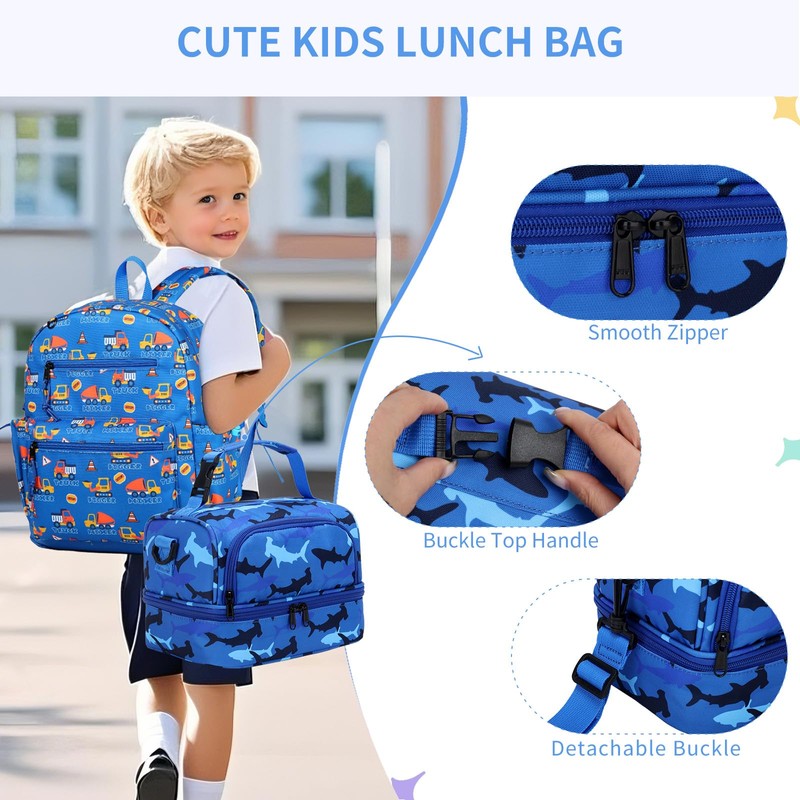 - HIGH QUALITY DESIGN: The detachable and convenient buckle top handle can be used for carrying or hanging on a backpack, while the detachable shoulder strap can also be used for crossbody or single shoulder carrying with multiple carrying options. The reinforced stitching makes children's lunch box bags more durable and long-lasting.