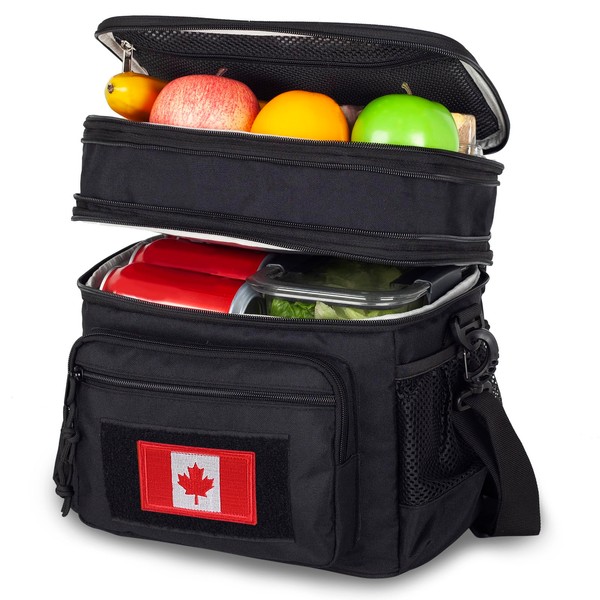 Lunch Bag for Men, Atripack Double Deck Tactical Lunch Box Work with Shoulder Strap MOLLE Webbing Large Lunch Cooler Leakproof Insulated (Black)