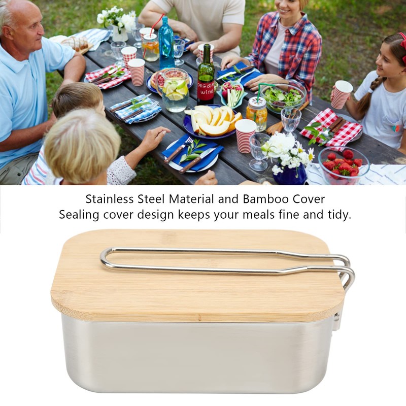 Lunch Box Container, Stainless Steel Portable Folding Handle Food Mess Tin for Picnic