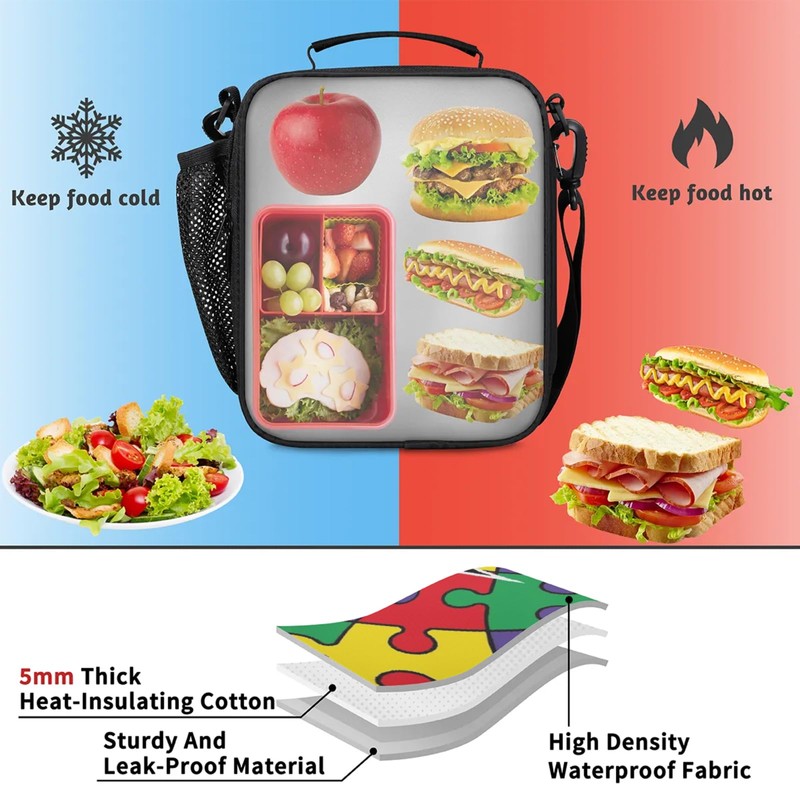 - 【Inspirational Design】This lunch box is themed around autism awareness and patterned with symbolic puzzle pieces, hearts and motivational sayings like [It’s ok to be different], which showing the kindness and encouragement. It is not only loved by children, but also inspires them to be brave and strong