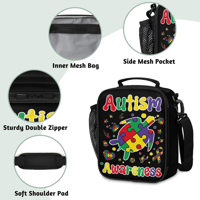 Lunch Box for Boys Girls - Turtle Reusable Insulated Lunch Bags for Kids - Autism Awareness Large Capacity Cooler Back to School Lunch Thermal Meal Tote Kit