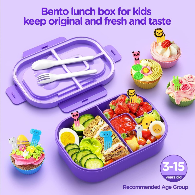 Lunch Box Kids Bento Box - 1300ML Ideal Leak Proof Bento Lunch Box for Kids School Lunchbox for Teens Toddlers Boys, Lunch Box Snack Containers with Utensil (Lunch Box-Purple)