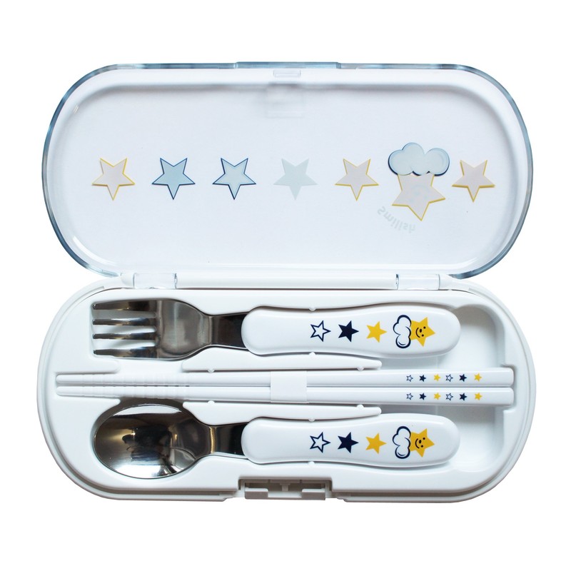 Lunch Trio Set (Chopsticks, Spoon, Fork with your name seal) sumairi-suta- Pattern Made in Japan