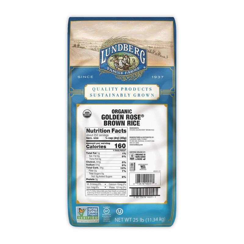 Lundberg Family Farms - Organic Golden Rose Brown Rice, Premium Medium Grain Bulk Rice, Non-GMO, Certified Gluten-Free, USDA Certified Organic, 100% Whole Grain, Kosher (25 lb)