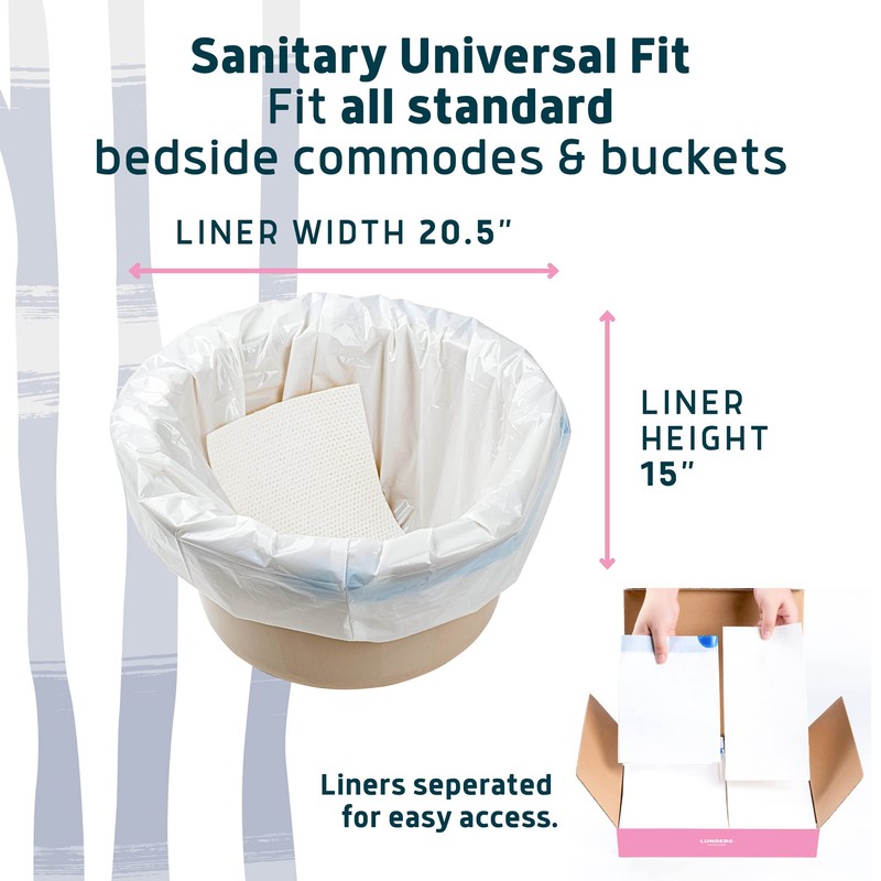 - Light Rose Scent, Best Value & Universal Fit: This set comes in a sturdy box that includes 150 Lunderg commode liners and 150 super absorbent pads already separated for your convenience, all made with medical grade materials. Our liners fit all standard bedside commodes, adult potty chairs, and buckets.