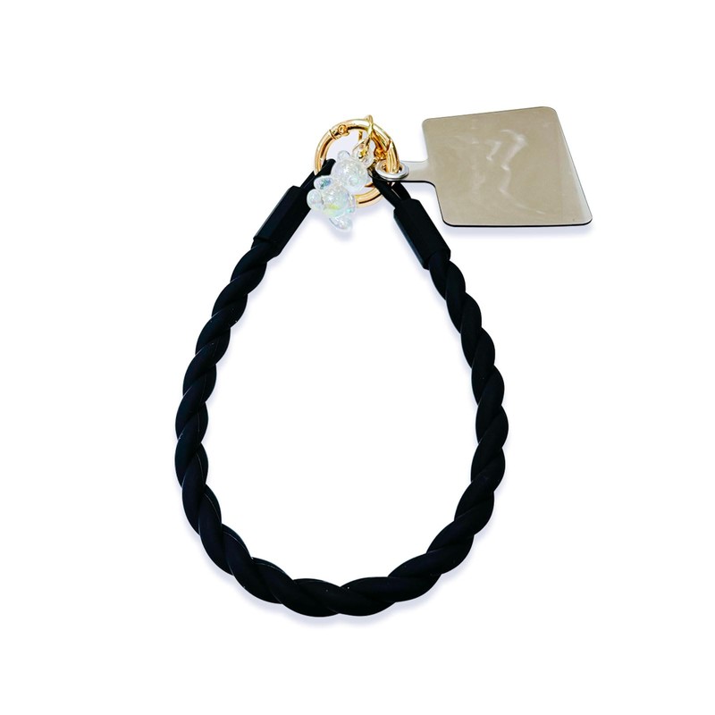 LUNDOME Phone Wrist Strap, Liquid Silicone Rubber Phone Charms,Matching Pack Tether Tabs,Two-Color Braided (black)