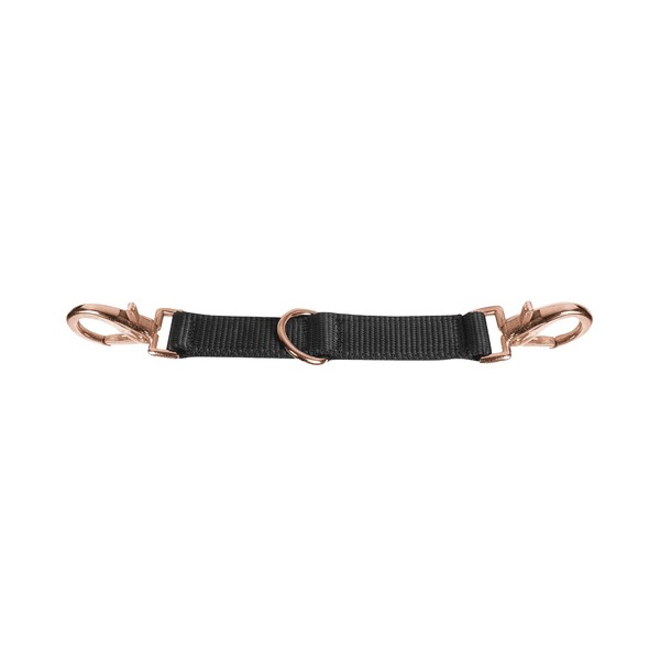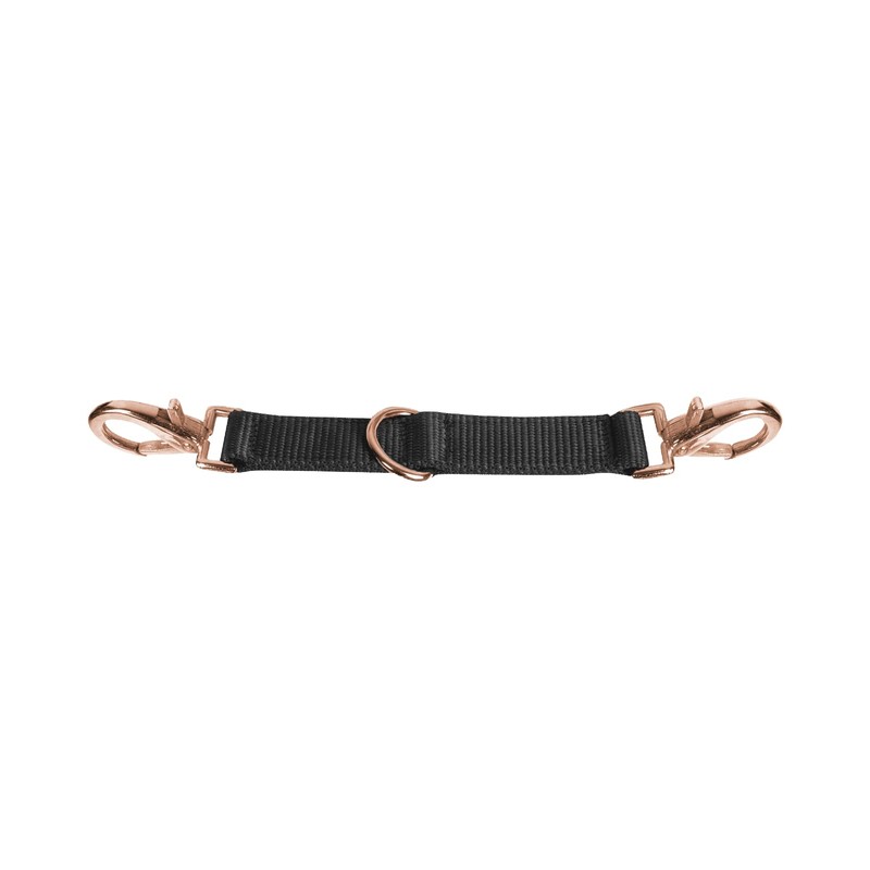 - With two carabiners and D-ring in the middle. With rose gold fittings.