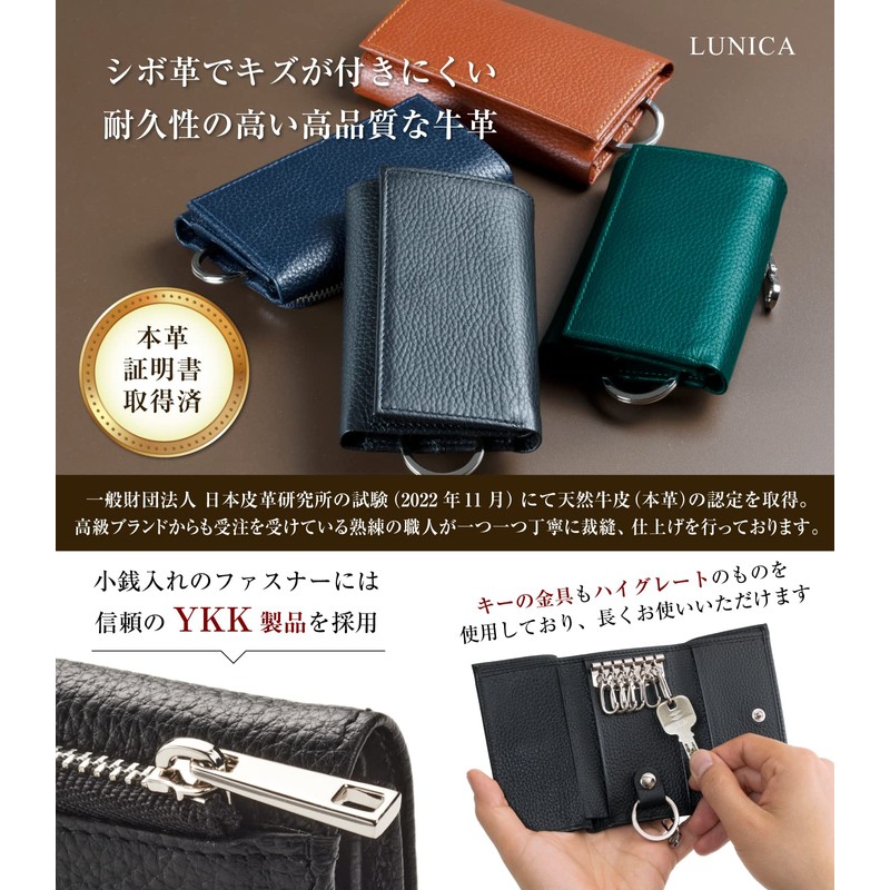 - (High Quality Material) Made of high quality cowhide leather on the outside and inside. Genuine cowhide leather (genuine leather) certified by the Japan Leather Research Institute (November 2022). The zipper of the coin purse is made of a reliable YKK product. Smooth opening and closing ◆ The metal fittings of the keys are also made of high grade material, which is durable and can be used for a long time