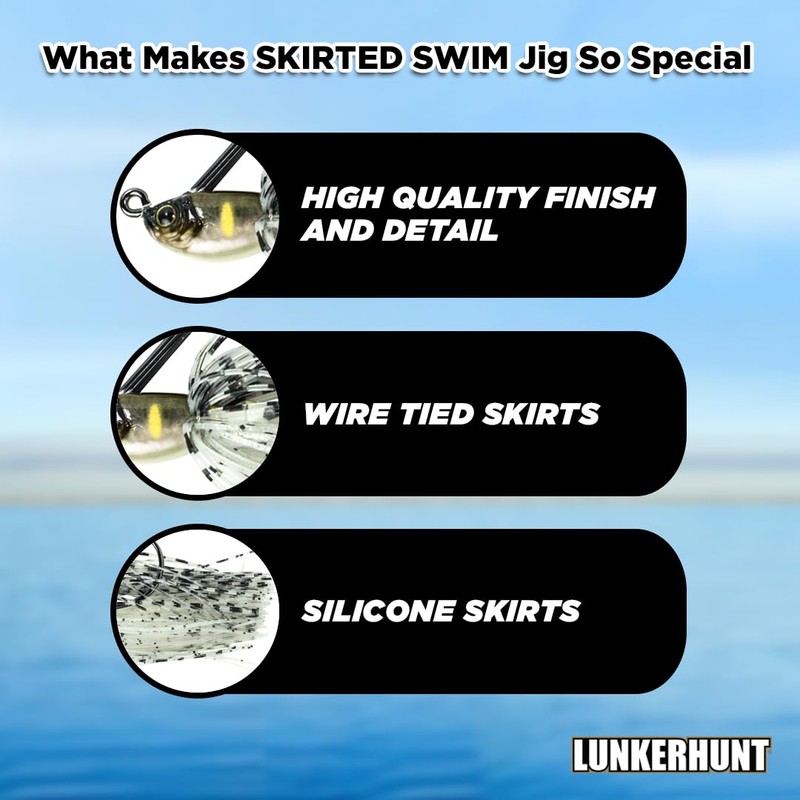 - HIGH-QUALITY FEATURES: The Lunker Natural Skirted Swim Jig features wire tied silicone skirts, and a perfectly sized nylon bristle weed guard.