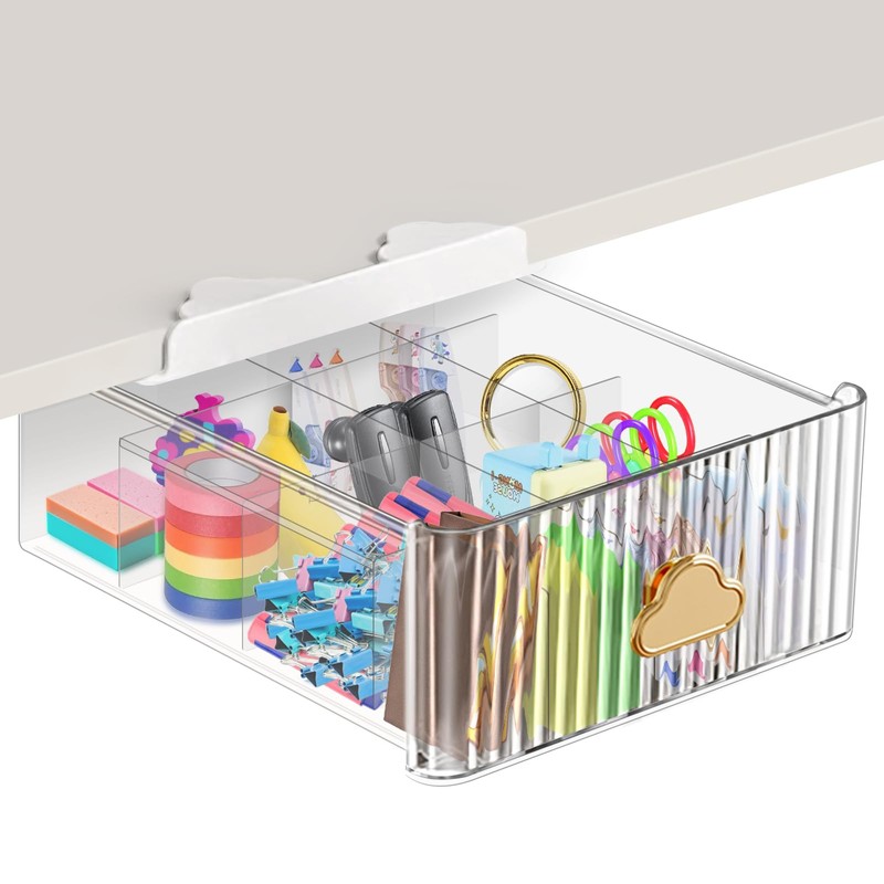- 【Space Saving】Hang the drawer under a desk or closet partition using the hooks and adhesive tape to optimize storage space. Hooks are 0.7 in./2 cm wide and the recommended shelf thickness is close to or slightly less than 0.7 inches. Please measure the thickness of the partition to ensure it can be installed.