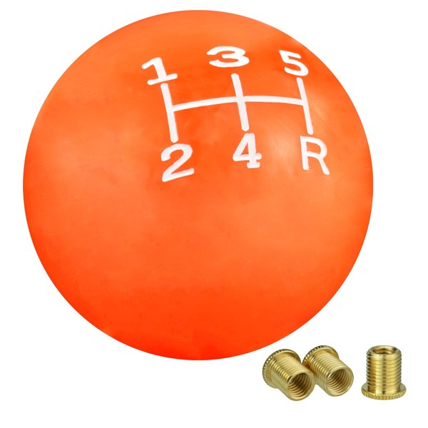 Lunsom 5 Speed Shift Knob, Round Ball Gear Strick Knob Resin Shifter Lever Head Compatible with Manual Car,3 Adapters,Orange and White,Lower Right R