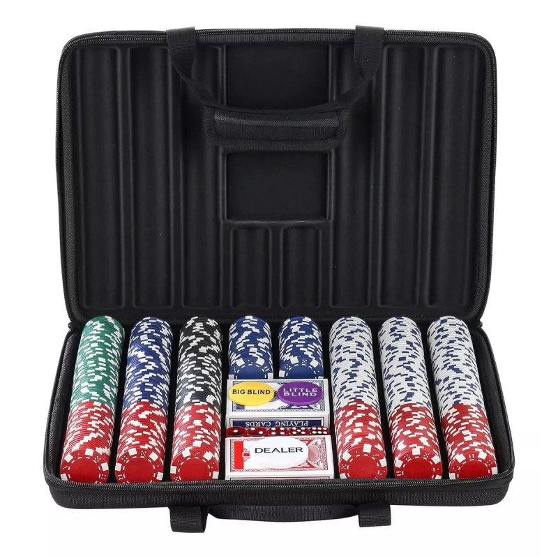 LUOBAO Set Poker 500 Fichas Holdem Blackjack Estuche Tela Rígida