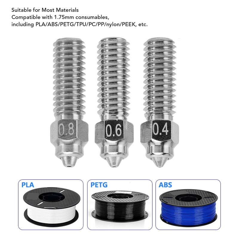 3. High Hardness: The nozzle is made of high hardness hardened steel, ensuring no wear or tip damage during long printing sessions. Compatible with a variety of filaments including PLA, ABS, PETG, nylon, carbon fiber, glass fiber.
