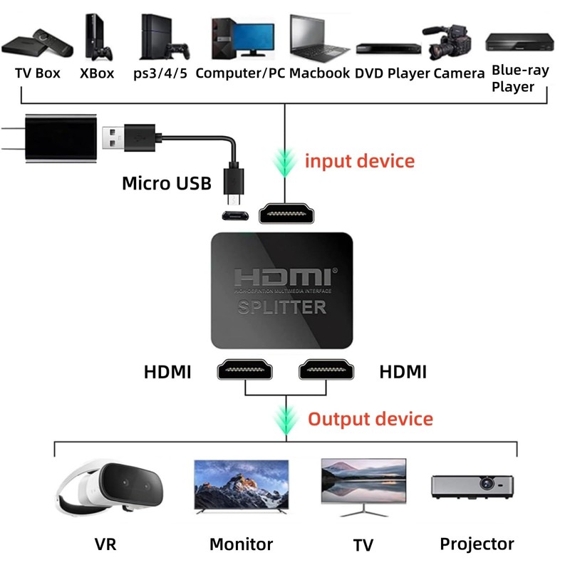 - Plug-and-Play Installation - Designed for ultimate convenience with automatic signal detection and configuration, requiring no additional drivers or complicated setup procedures. Simply connect your HDMI source device to the input port, attach your two displays to the output ports, provide power through the included USB cable, and enjoy immediate mirrored content across both screens without any technical expertise required.