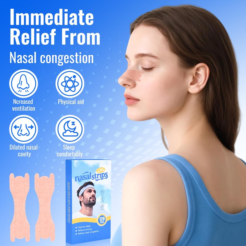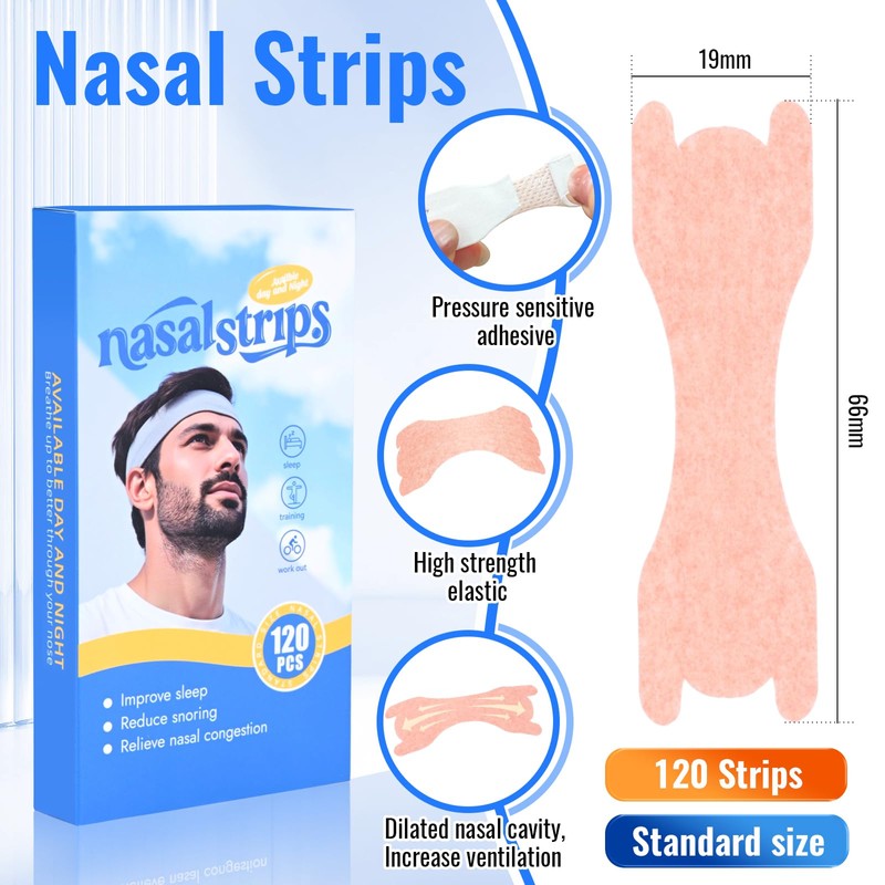 LUOJINYI Nose Plasters Snoring, Pack of 120 Nasal Strips, Nose Strips Better Breathing for Sports and Sleep, Breathable Nose Strips Relieve Nasal Congestion, Effective Anti Snoring (66 x 19 mm)
