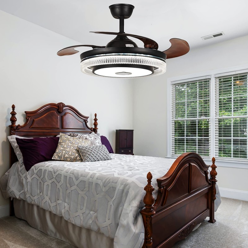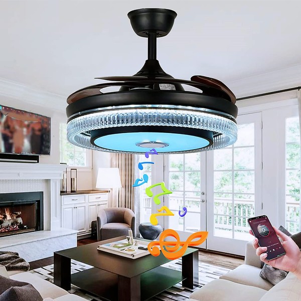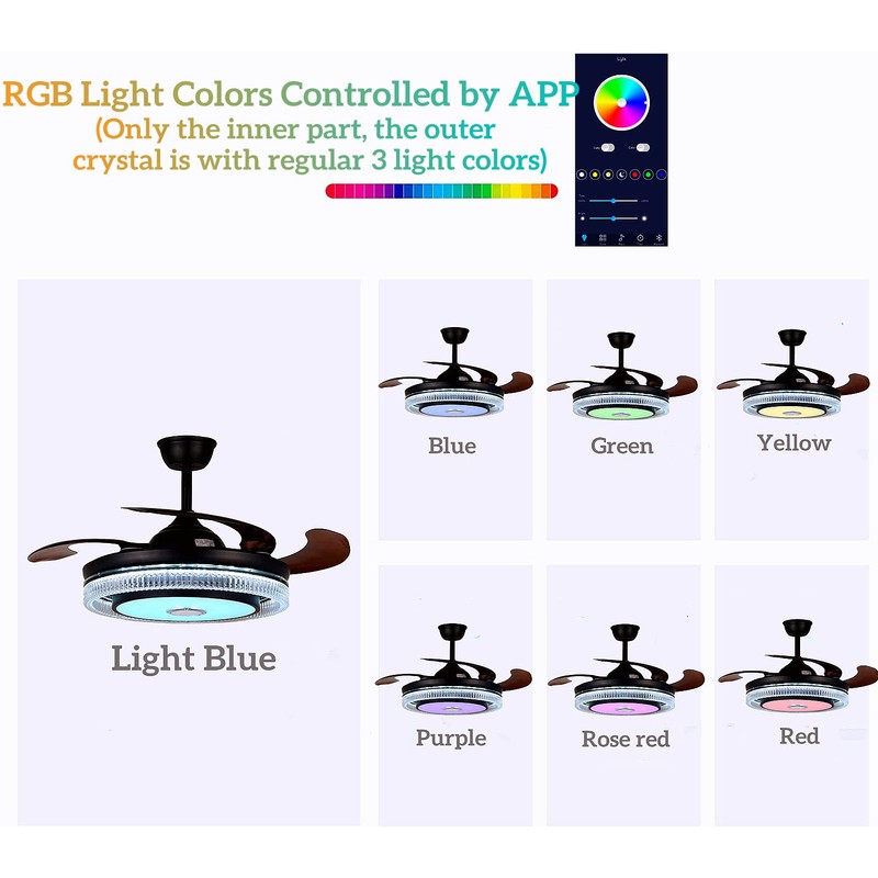 - đăBluetooth Music Fandelieră: Retractable fandelier ceiling fans, crystal chandelier, colorful led lights and Bluetooth speaker 4 in 1, more smart and convenient for you to use. The built-in Bluetooth audio player provides 3D stereo surround sound, you will be immersed in the music!
