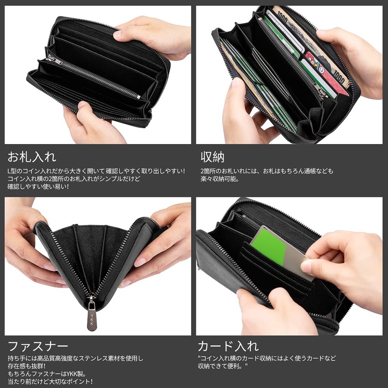 LUOLUO Men's Wallet, Long Wallet, Genuine Leather, Men's, Large Capacity, YKK...