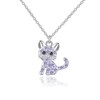 luomart Girls Cat Birthstone Necklaces Jewelry,Silver Plated Kitty Dog Pendant Gifts Set for Women Boys Men (Girls Amethyst)