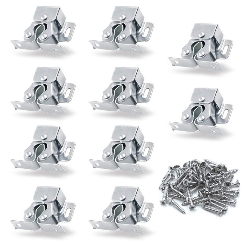 Luomorgo 10 Pack Double Roller Catch Cabinet Latches with Spear Strike for Cupboard Closet Door, Silver