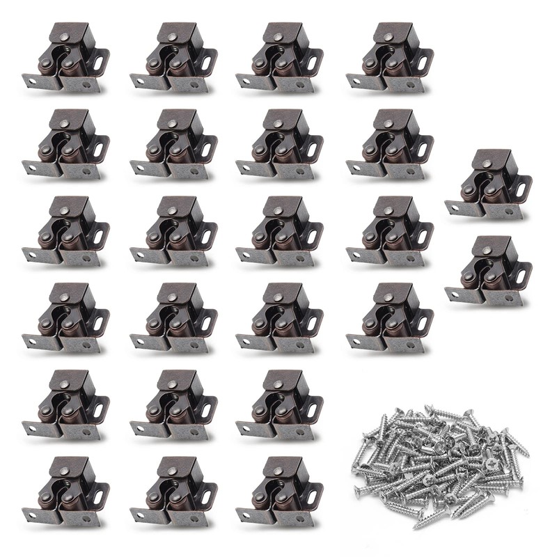 - Package Includes: 24 x double roller catch with mounting screws; Colour: Antique bronze