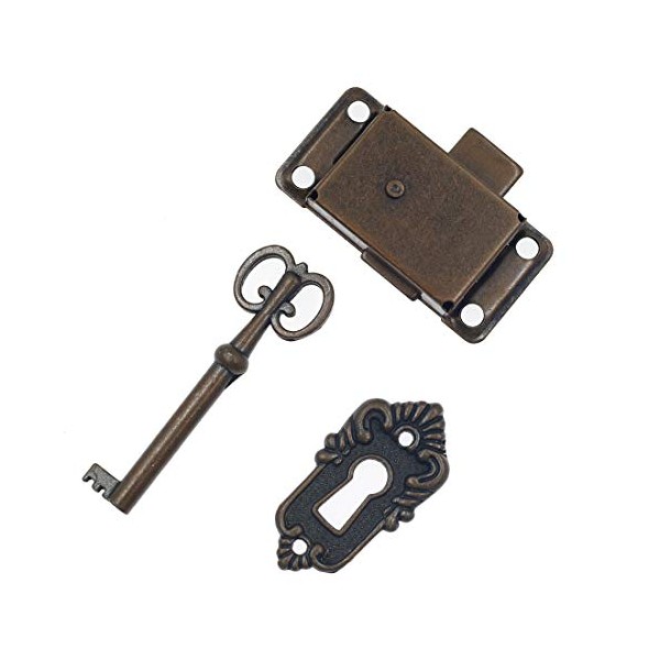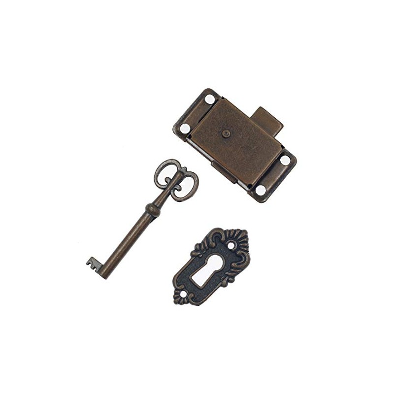 Luomorgo Cabinet Lock Cupboard Door Lock Spring Door Lock Decorative Case Box Lock with Key, Antique Red