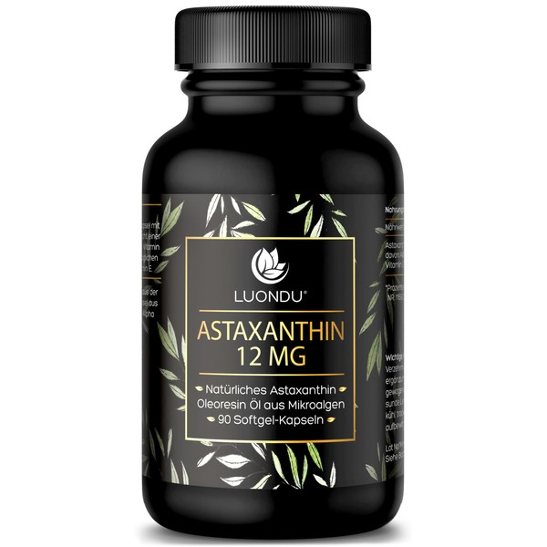 Luondu Luondu Astaxanthin 12mg Astaxanthin Hochdosiert - 90 Astaxanthin Softgel Kapseln - Astaxanthin Kapseln Natürliches Astaxanthin - Antioxidantien Astaxantin Kapseln Astaxanthin Bräunungskapsel