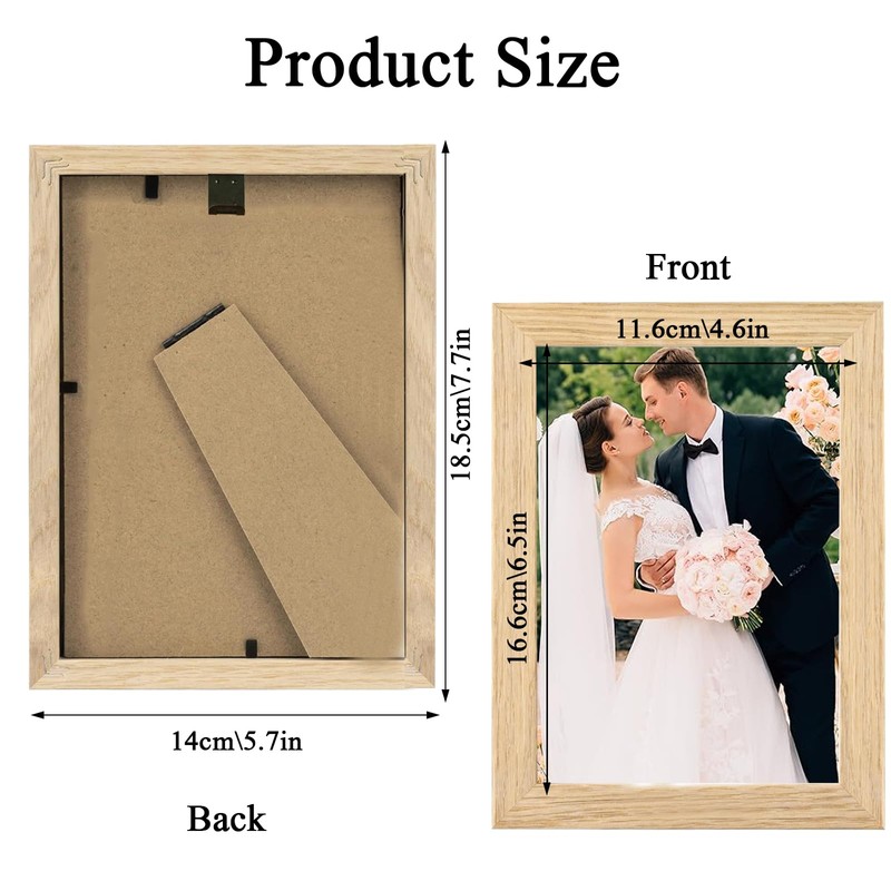 - 【SAFE & LIGHTWEIGHT】Photo frame is made of durable composite wood with a shatterproof plexiglass cover. The wooden photo frame's shatterproof design protects your photos and eliminates the risk of glass cuts.