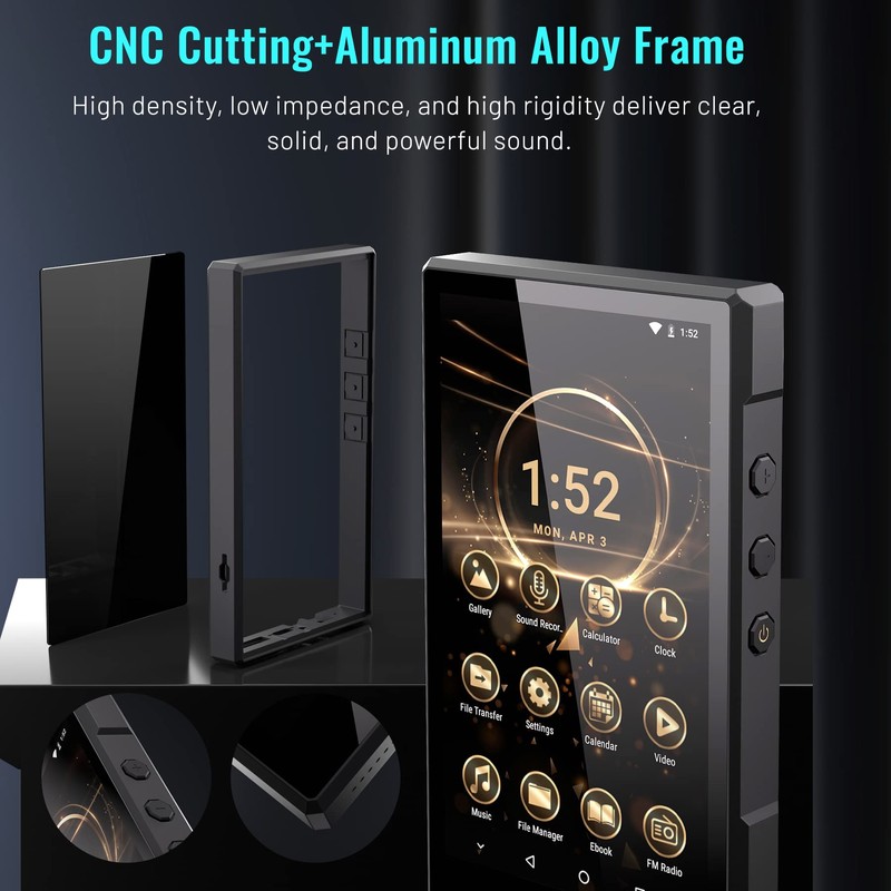 - Unique Design & Super Battery Life: This MP3&MP4 player is uniquely designed with CNC aluminum frame and tempered glass back, well feel and sturdy. Inbuilt 5000mAh capacity battery, which is much higher than other similar MP3 players, test condition: earphone, wifi, local music, screen lightup, duration: 12 hours constantly.