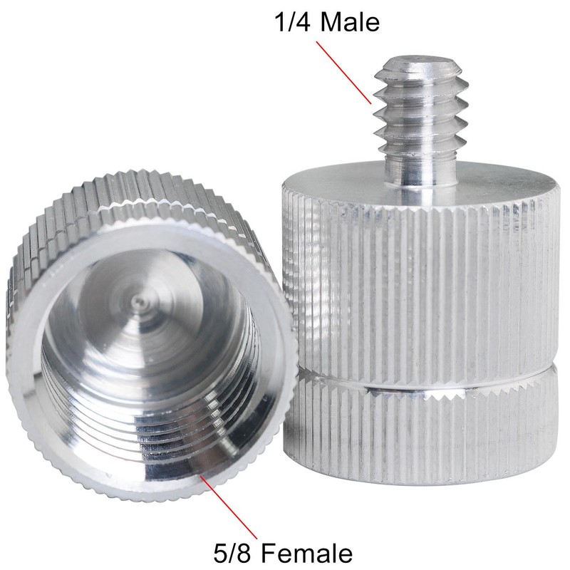 - Package content: 2pcs 1/4 male to 5/8-11 female tripod thread adapter