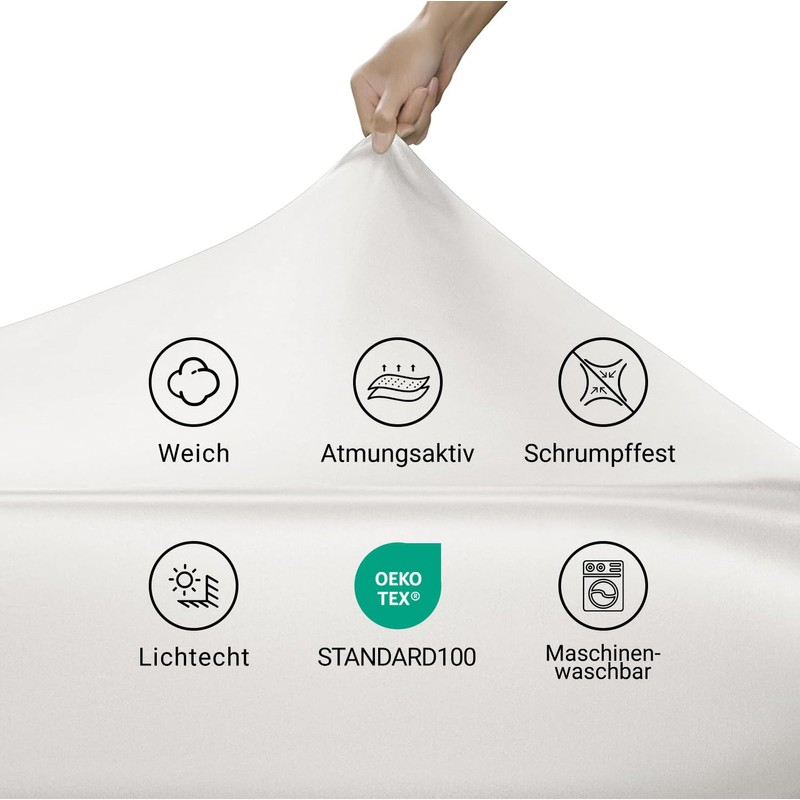 • Material: 100% polyester microfibre. Smooth and delicate, with a silky touch, so you can sleep peacefully at night. Certified according to Oeko-Tex Standard 100