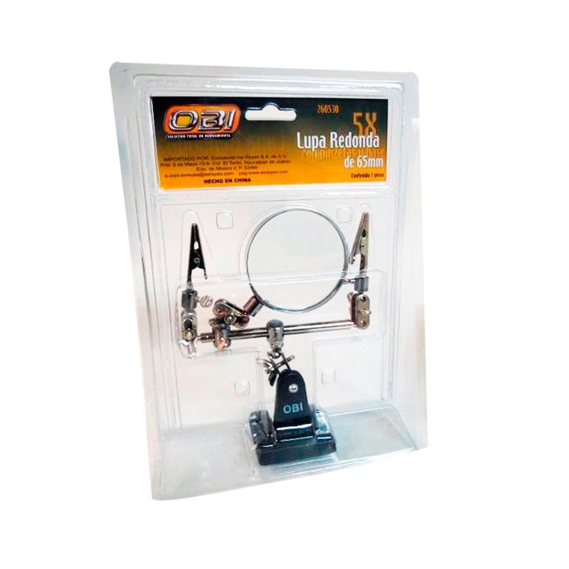 Lupa con Base y Pinzas 65 mm 5X 16128 Blister OBI