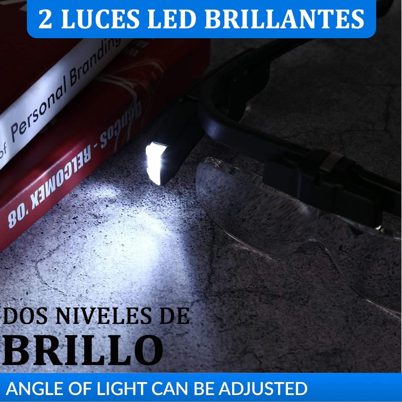 2.Ajuste alrededor de su cabeza y sostenga lupas en sus ojos para que pueda ver objetos más pequeños con una vista ampliada,livianos y cómodos de usar.