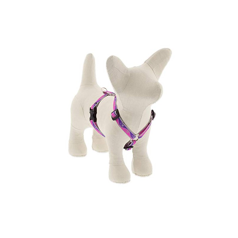 The Lupine Adjustable Roman harness is for small dogs under 20 pounds. In two girth size ranges: 9"-14", or 12"-20". To choose the correct size always measure the dog around the body, just behind the front legs. Measure snugly, and then add an extra 5% to find the actual adjusted size of the harness girth. Or, measure the girth strap from the dog?s current harness.