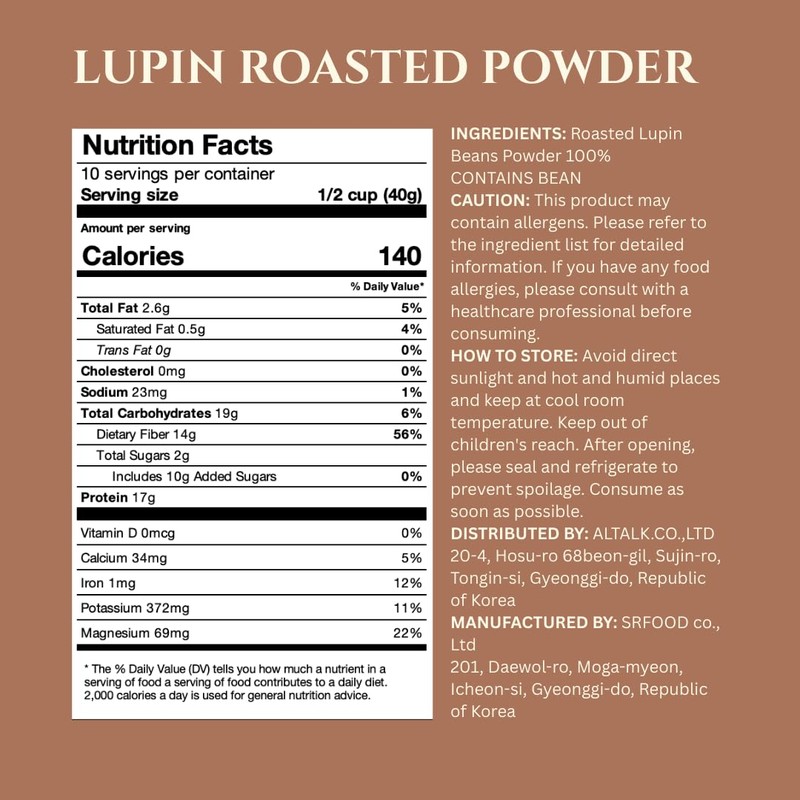 - ☀️ 100% Roasted Lupin Bean Powder – Made from premium Australian lupin beans, finely roasted and ground for rich, nutty flavor.