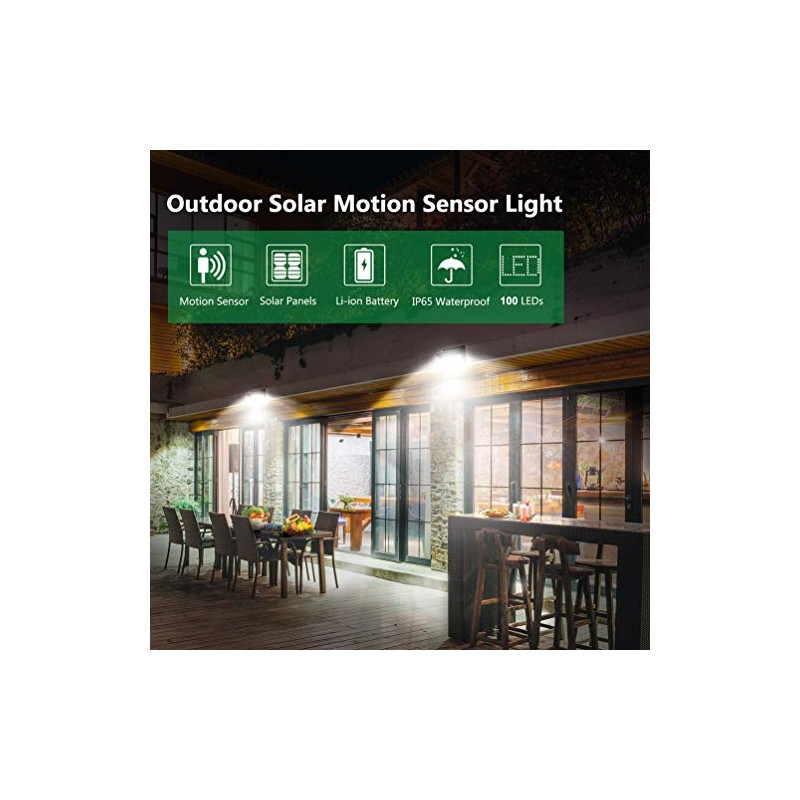 Luposwiten 100 LED Solar Lights Outdoor Waterproof with Motion Sensor - 2000 Lumens Solar Motion Lights Outdoor, Easy-to-Install for Front Door, Yard, Garage, Garden, Patio, Deck (2 Pack)