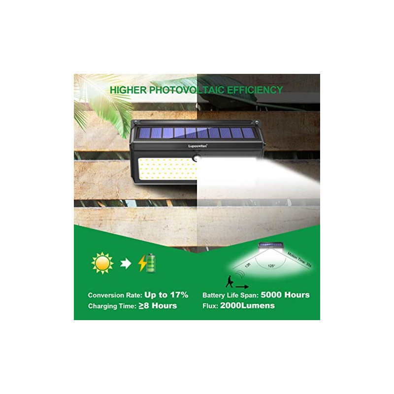 - 【Upgraged 125° Detection Range】 The solar lights built-in PIR motion sensor, and motion could be detected within 125° detection range and a 26 feet sensor length. It is sensive enough to used as a security light for ourdoor.
