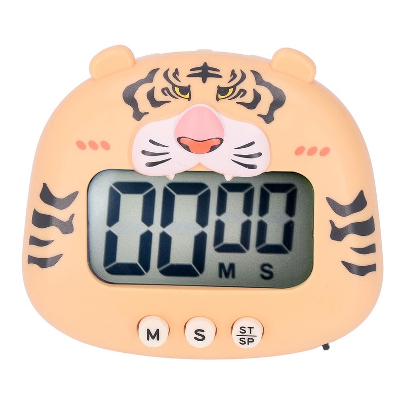 Luqeeg Cute Animal Digital Kitchen Timer, Yellow Tiger, LCD Large Screen Visual Clock, Accurate Timing, Multifunctional Setting, Easy to Use, Portable Design