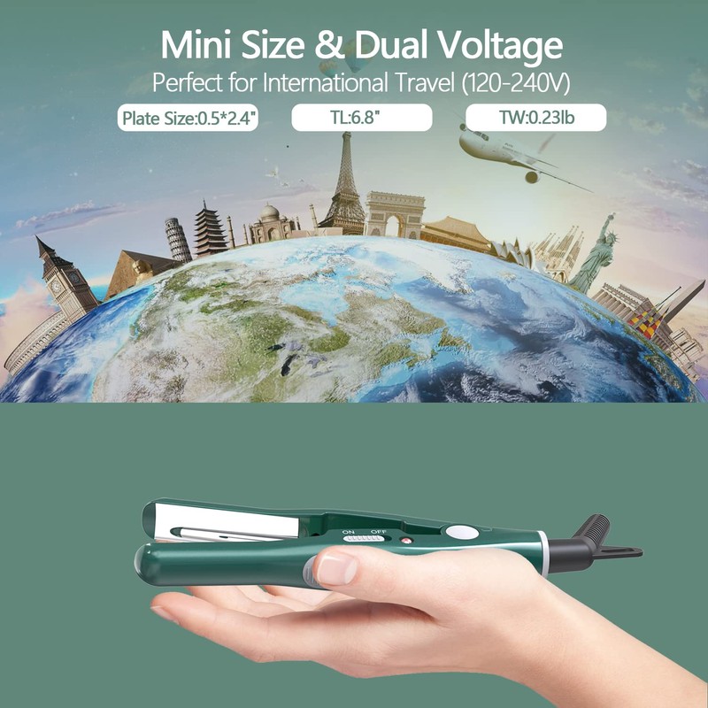 - Mini Size & Dual Voltage LURA small flat iron haspact size (purse size) and light weight(0.23lb),which can be packed in your handbag easily,In addition,it has dual voltage function, which means you can use it abroad without having to buy additional converter.