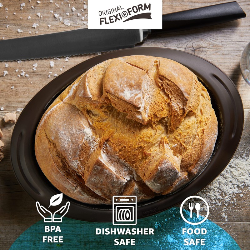 LURCH Germany Flexiform Oval Bread Pan For Baking All Kinds Of Bread | Mold Is Made Of 100% BPA-Free Premium Platinum Silicone | 9.4" x 7.1" - Brown