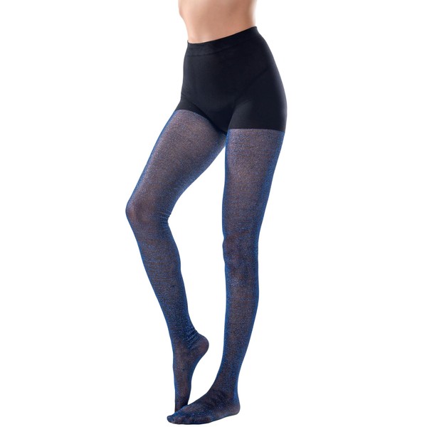 Lurex - Medias brillantes para mujer, Negro/Azul real, Talla única