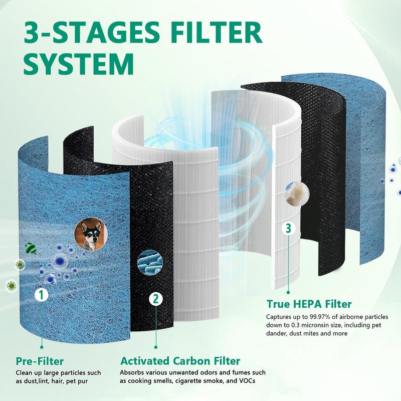 - 3-in-1 Filtration: HP302 replacement filter is made with H13 true HEPA, high-efficiency 3-in-1 True HEPA filtration system to capture hair, pet fur, fine dust, pet dander and odors