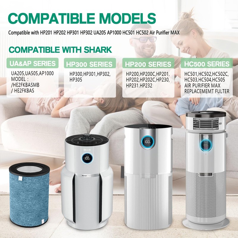 - Perfect Compatibility: HP302 air purifier MAX filter is compatible with Shark HP200 Series : HP201, HP202, HP202C,HP230, HP231, HP232 ; HP300 Series: HP300, HP301, HP302, HP305; HC500 Series: HC501, HC502, HC502C, HC503, HC504, HC505 Air Purifier MAX Replacement Filter , UA & AP Series : UA205, UA505, AP1000. Part # HE2FKBASMB, HE2FKBAS, HE2FKPET, HE2FKPRO, please check your model before purchasing