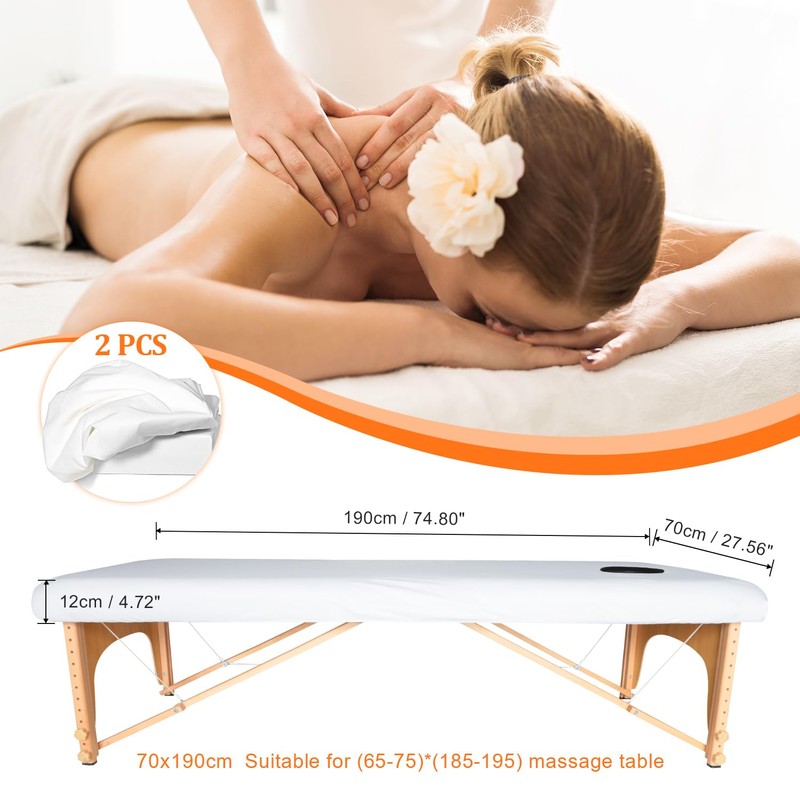 - 2-piece cosmetic lounger cover: 2 x washable stretch covers for massage table for easy replacement. Massage table fitted sheet with elastic elastic closure can be adjusted to the size, more convenient to use