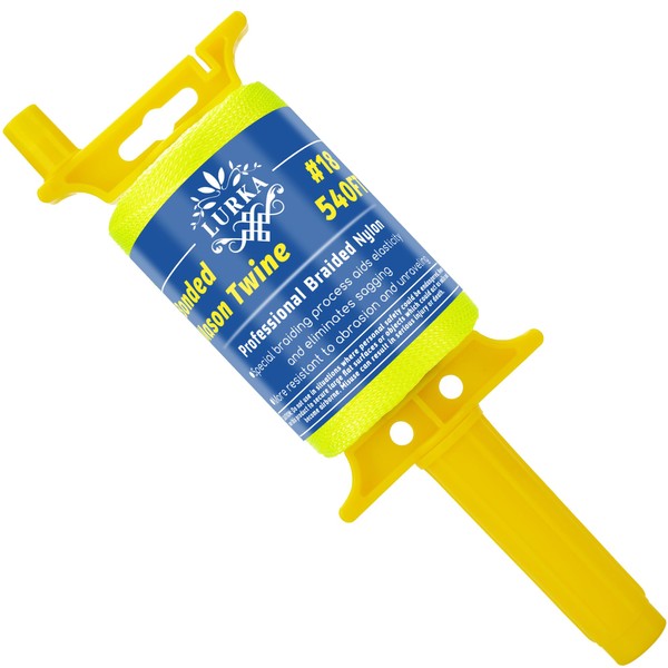 LURKA Mason Line String,#18 540 Feet 8 Braided Construction Nylon Line with Spool Fluorescent Yellow String Line for Precision Work, DIY, and Gardening Projects(Yellow Line)