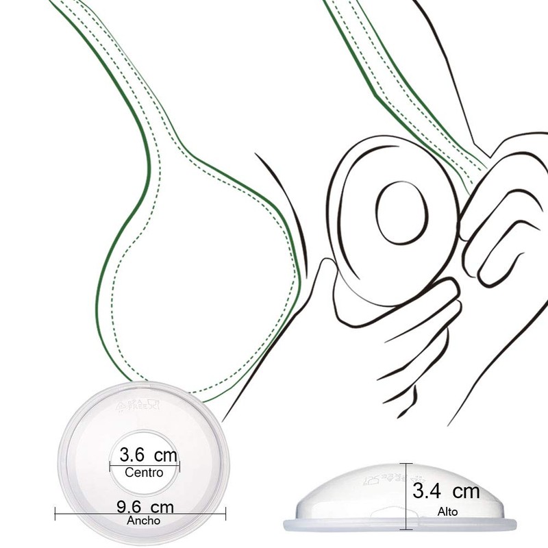 - Se adapta a cualquier tamaño de pecho, es discreto, fácil de limpiar, esterilizar y es portátil. No te preocupes más por mojar tu ropa mientras estás lactando