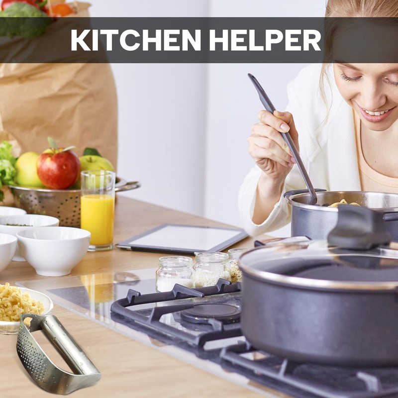 3. Garlic press made of stainless steel by pressing the garlic with a back and forth movement, you can easily crush or crush the garlic in half the normally required time and thus simplify the cooking process.