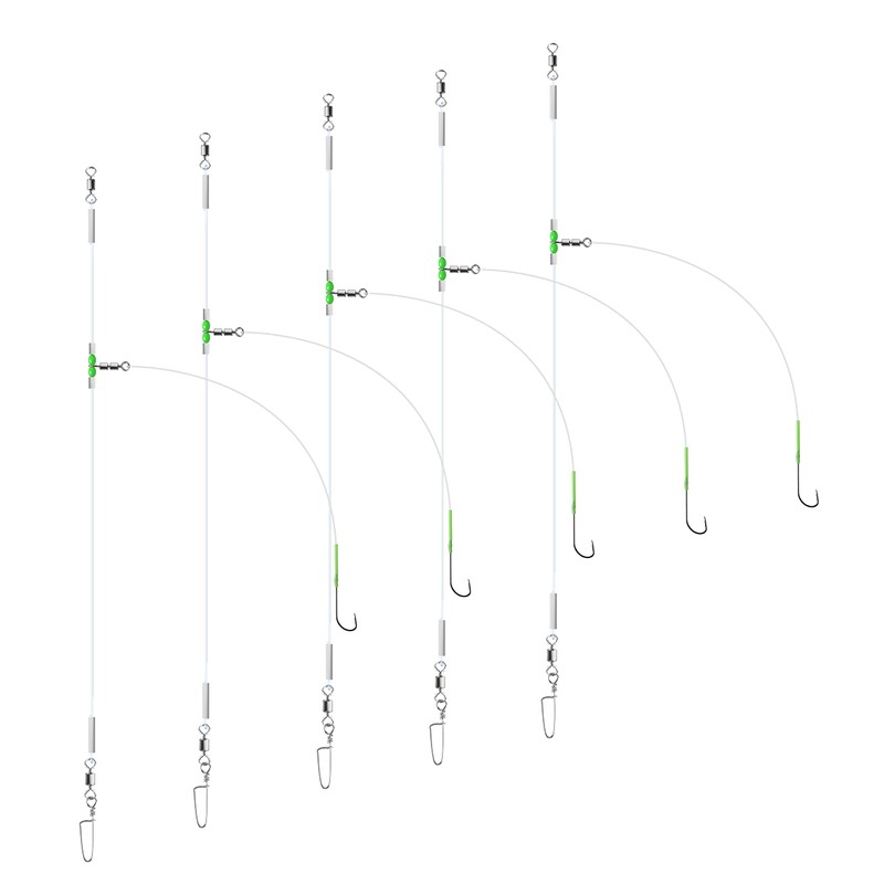 - [Multi-Pack]: This assortment contains 5pcs sea fishing rigs, each fishing rig has one hooks position. Main Line: 146 cm in length, Branch Line: 105 cm in length, withstand max 30 pounds.