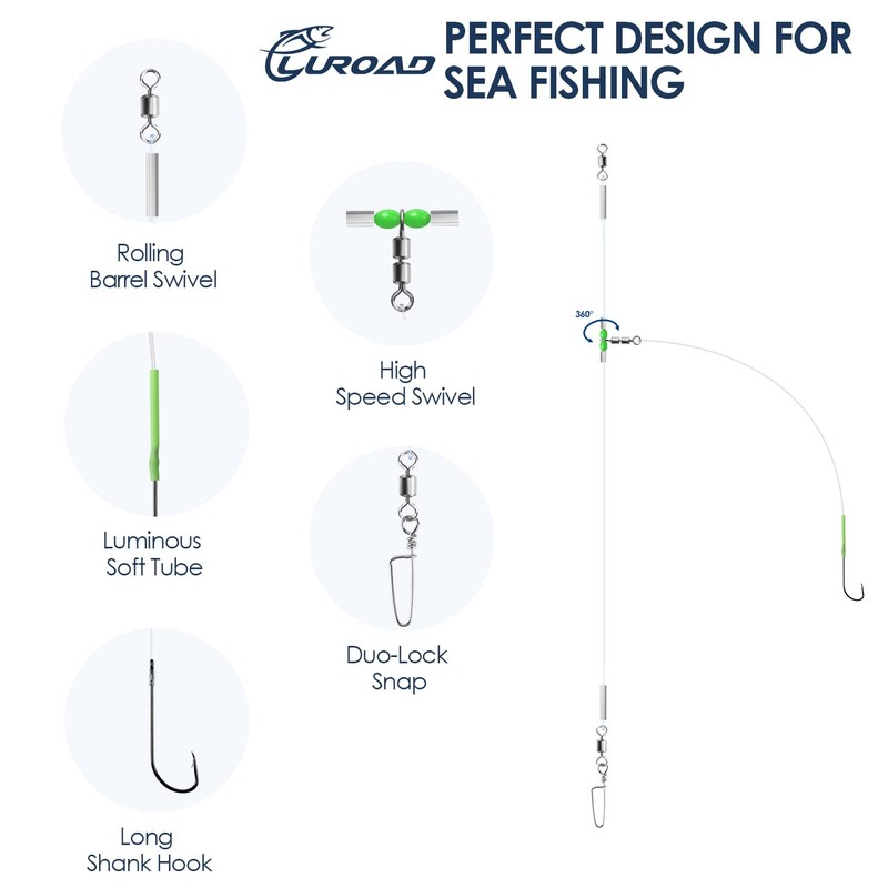-Ready-made rigs sea fishing equipment for sea fishing. The pulley rig is ideal for catching big fish like Bass, Cod, Whiting, Plaice and so on.