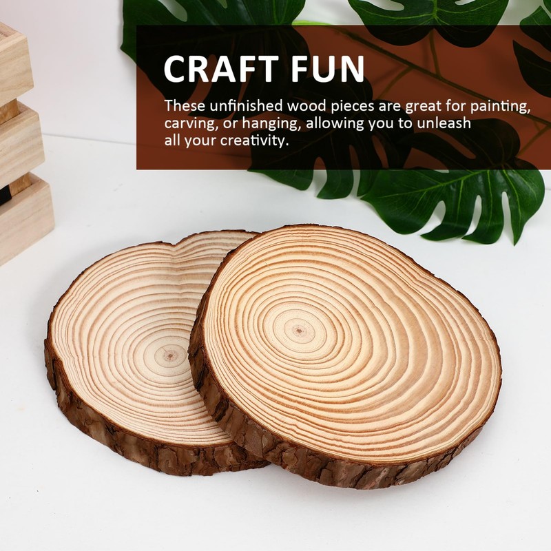 Home decor: Ideal for introducing a touch of nature to your living space, these unpainted wood slices can be used as coasters, wall decor, or as part of centerpieces.